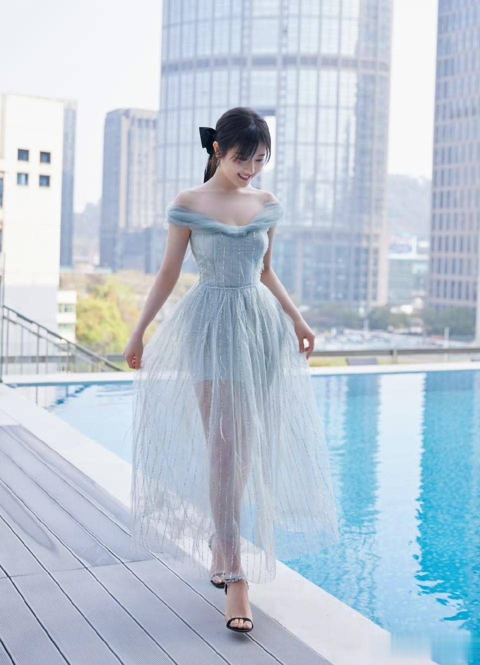 薄纱裙的选择极为精妙,清透飘逸的材质自带仙气,无论渐变印花还是简约纯色,都衬得她肌肤白皙透亮。柔和的裙摆垂坠感十足,随风轻摆时灵动又温婉,毫无浮夸之感,与她本身软萌清甜的气质完美契合。修身的剪裁悄然勾勒出柔和的身形线条,少女的娇俏与温婉恰到好处,既不刻意扮成熟,也不显稚嫩,甜度恰到好处。